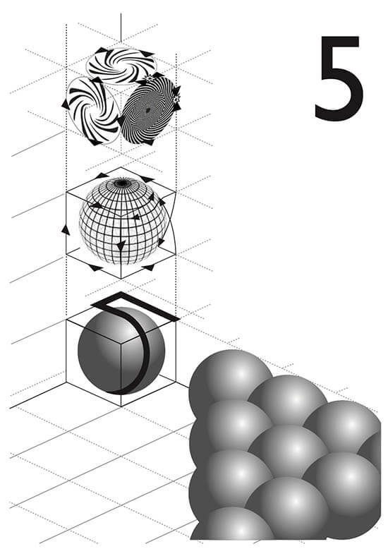 - El número cinco nace de la materia inseminada por la esencia (4 + 1), y la manifestación de fuerzas contrapuestas en equilibrio (2 + 3).