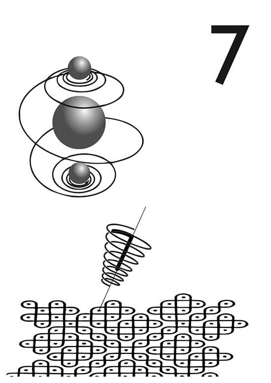 - Los remolinos se afectan unos a otros, se relacionan. Se equilibran y se definen según los torbellinos con los que interactúan. Adquieren identidad propia, el vocabulario con el que se expresa la creación. El siete representa las palabras de este incipiente lenguaje.